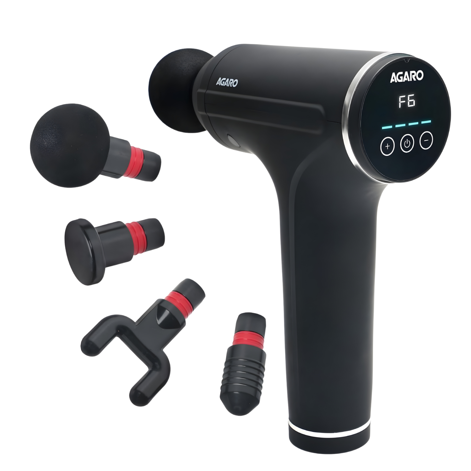 AGARO Galaxy Gun Massager, 4 Heads, 6 Speed, Rechargeable, Handheld, Acupressure, Muscle Massager for Full Body Relief, Muscle Relaxation of Neck, Shoulder, Back, Foot for Men & Women, Black.