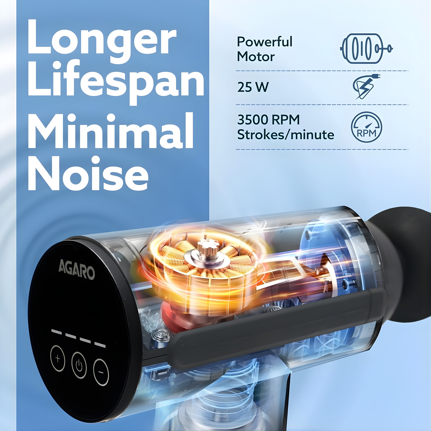 - Powerful 25W motor generates high torque up to 3500 strokes per minute