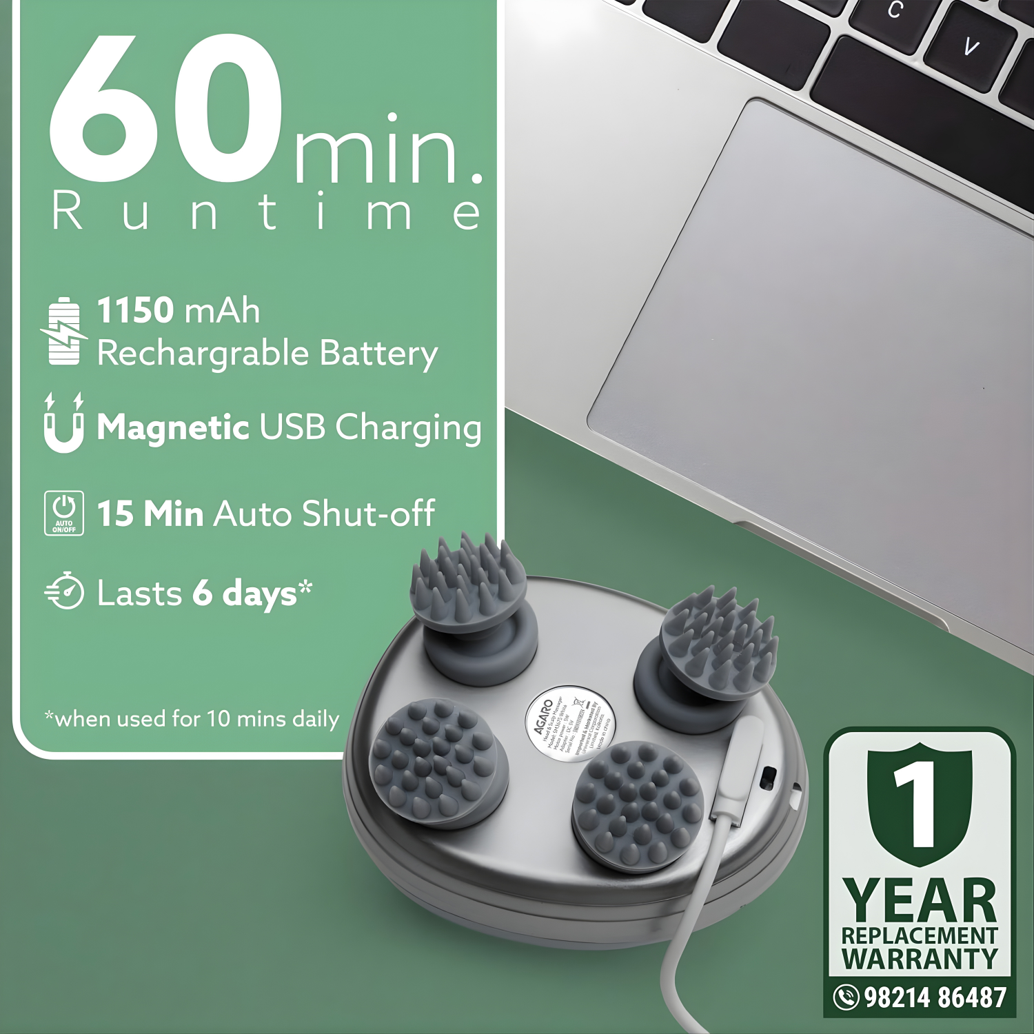 AGARO Scalp Massager, Rechargeable Electric Head Kneading Massager, 3 Speed Modes, Handheld Portable Head Scratcher Massager for Hair Growth, Deep Clean & Stress Relax, SM3675