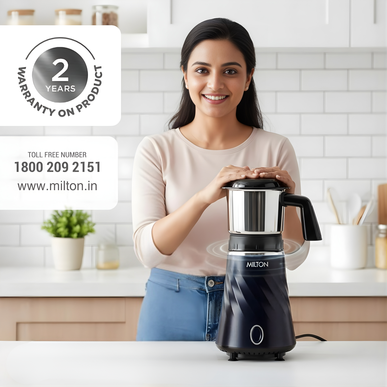 MILTON MINIQ 1 Jar Mini Mixer Grinder | Over Load Protector, HTLV 350W Motor, Anti Skid Feet, Masala Grinder, Chutney Blender, Black/Blue