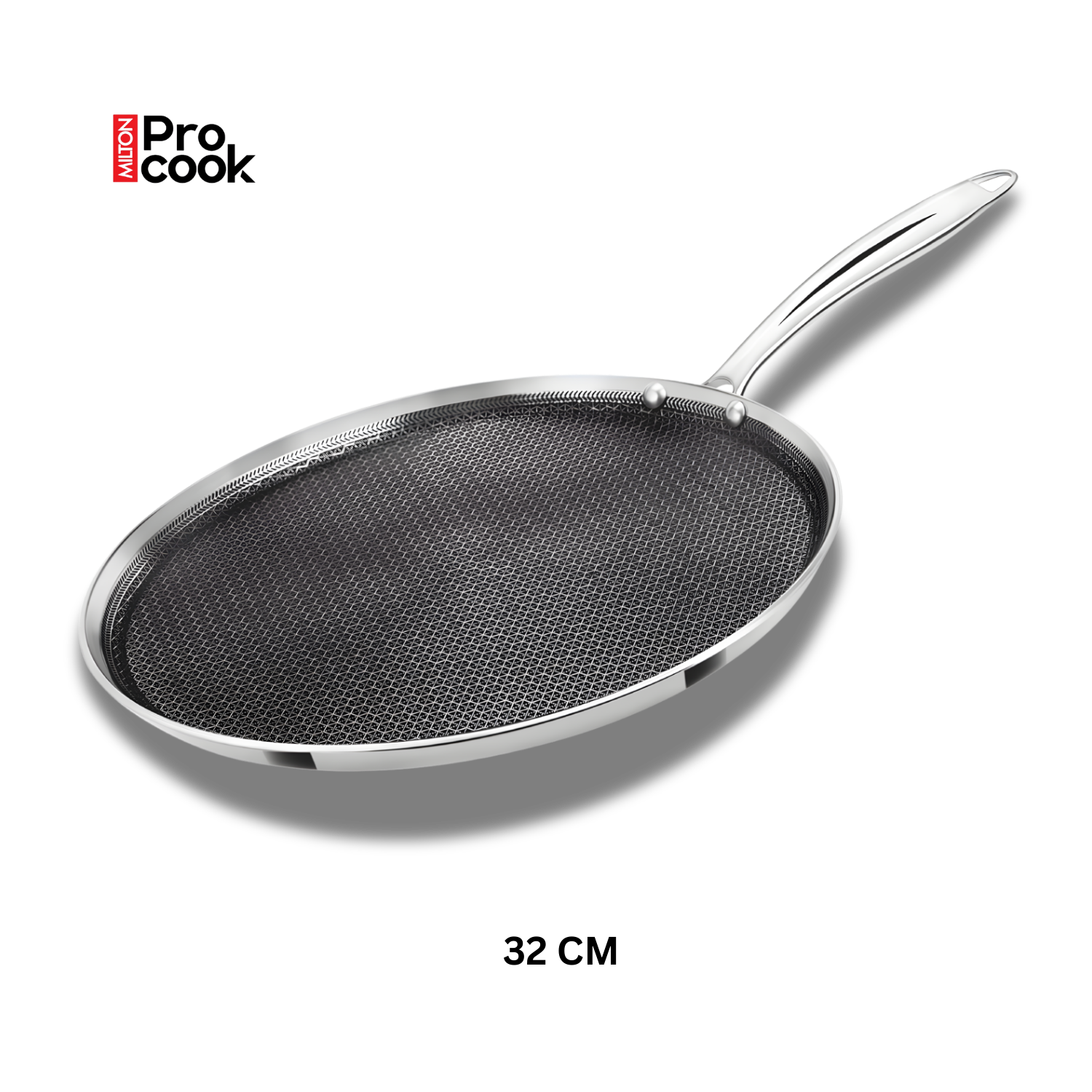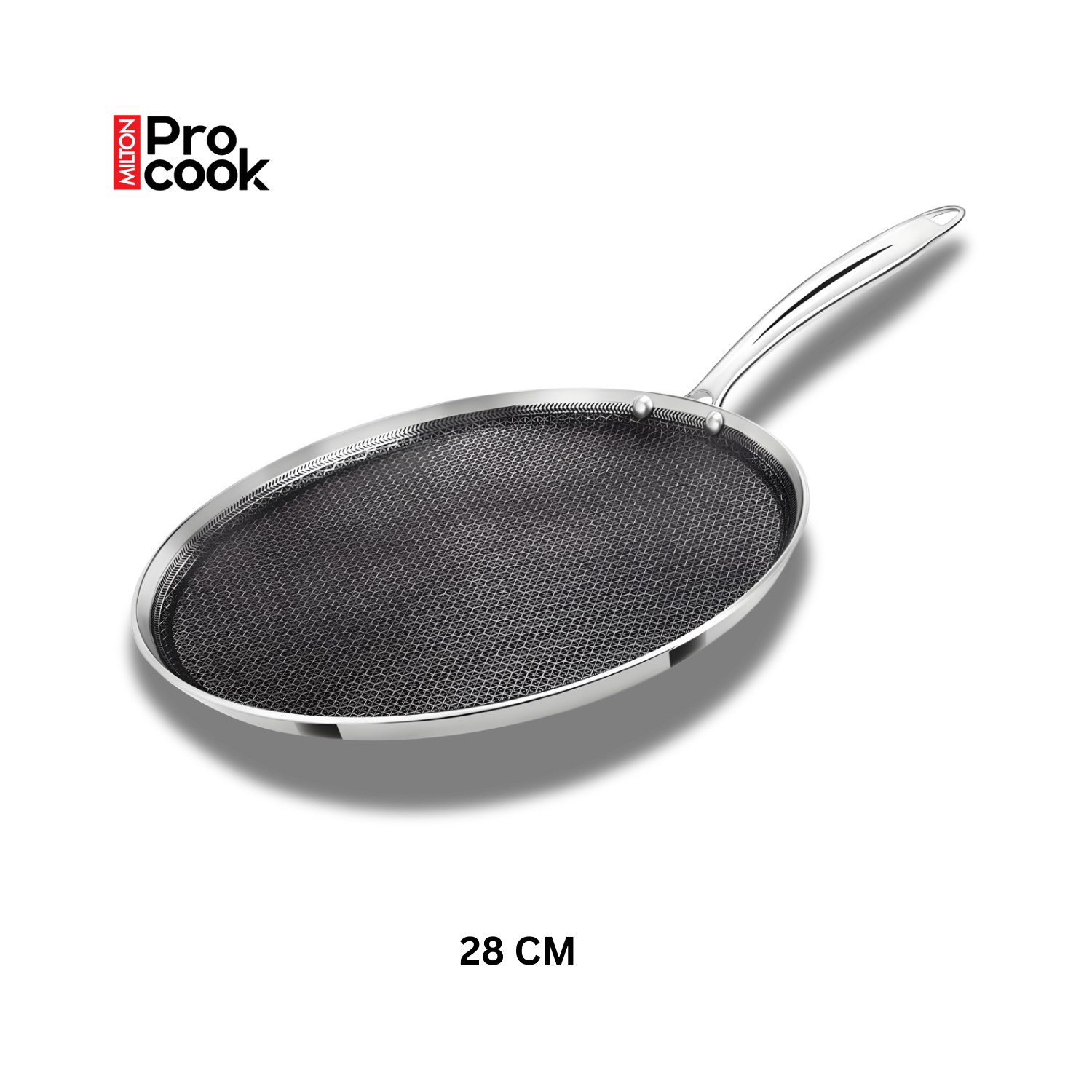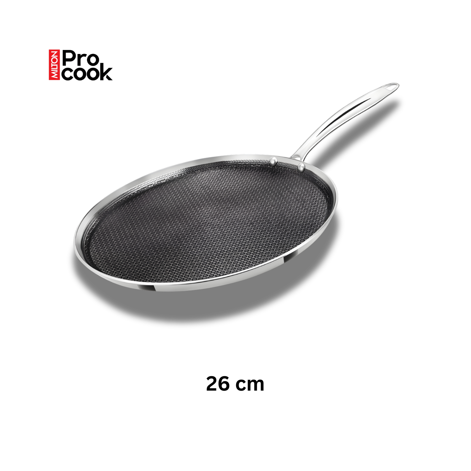 MILTON Pro cook Triply Hexa Tech Induction Stainless Steel Tawa, Silver, Honeycomb Non-Stick Structure