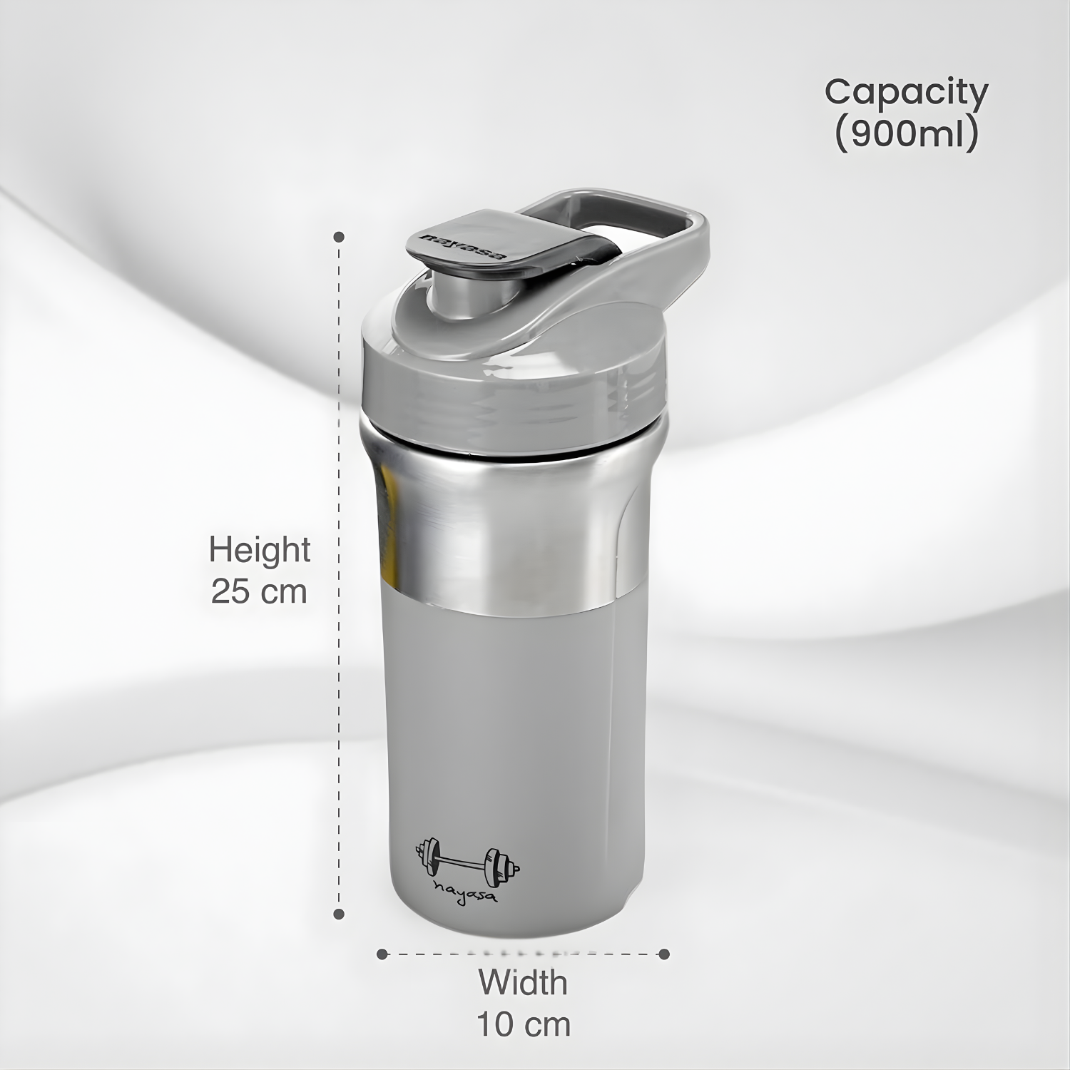 NAYASA Alloy Cross Fit Stainless Steel Gym Shaker Bottle | 900 ml | Leakproof & Durable
